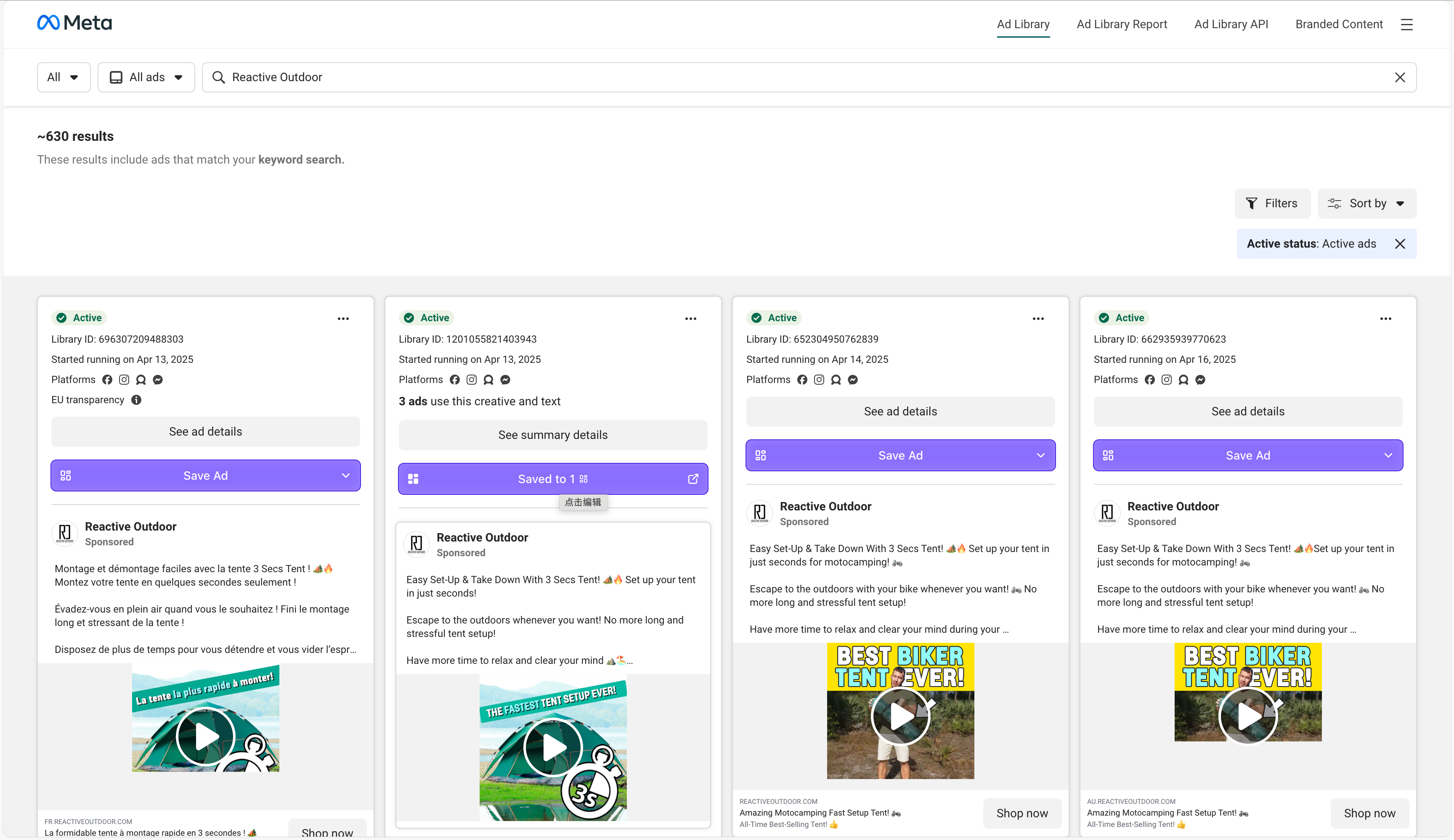 Save 10 new ads from competitors