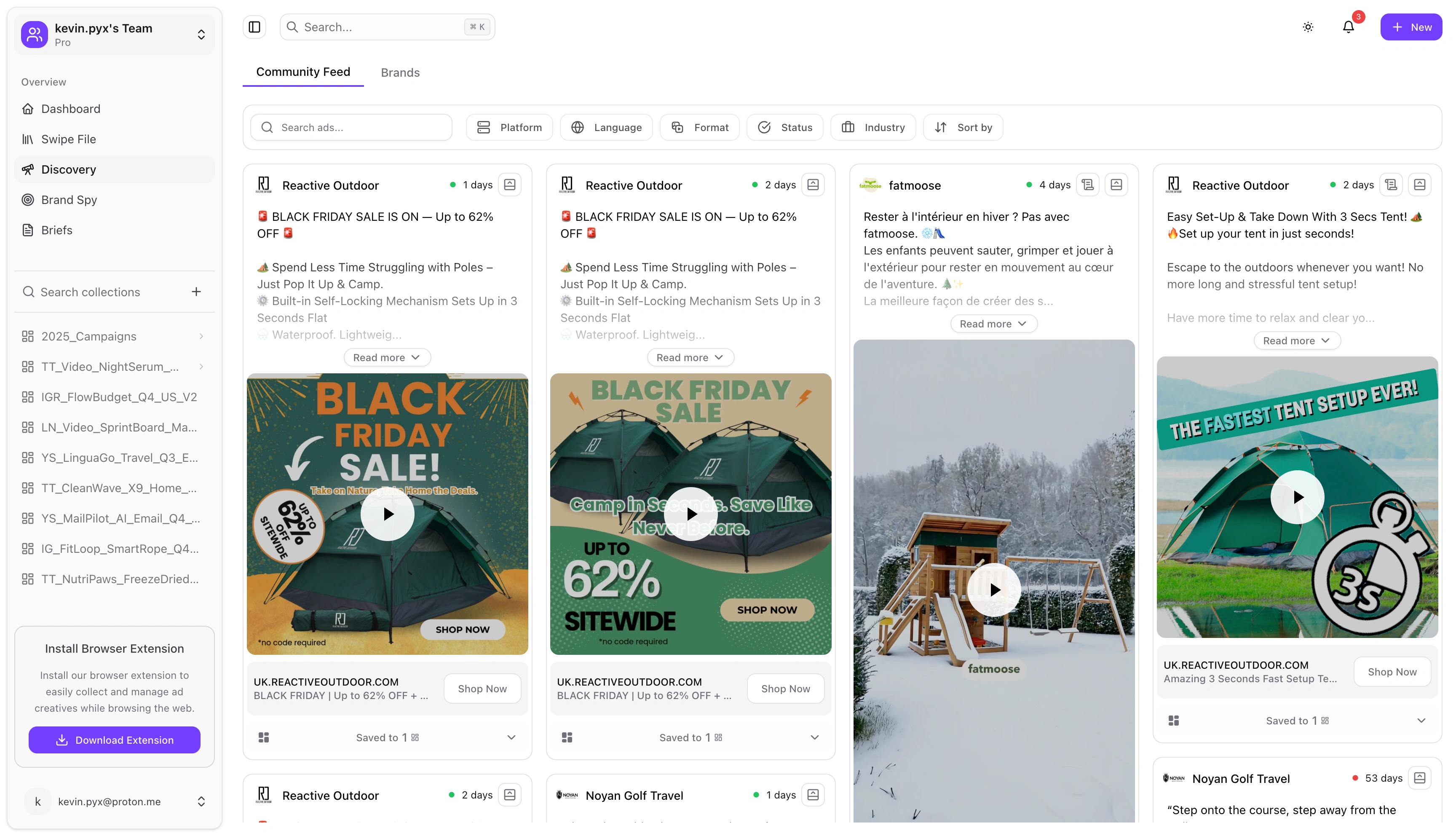 Browse ads from Facebook, TikTok, YouTube Shorts and 4+ platforms in one place.