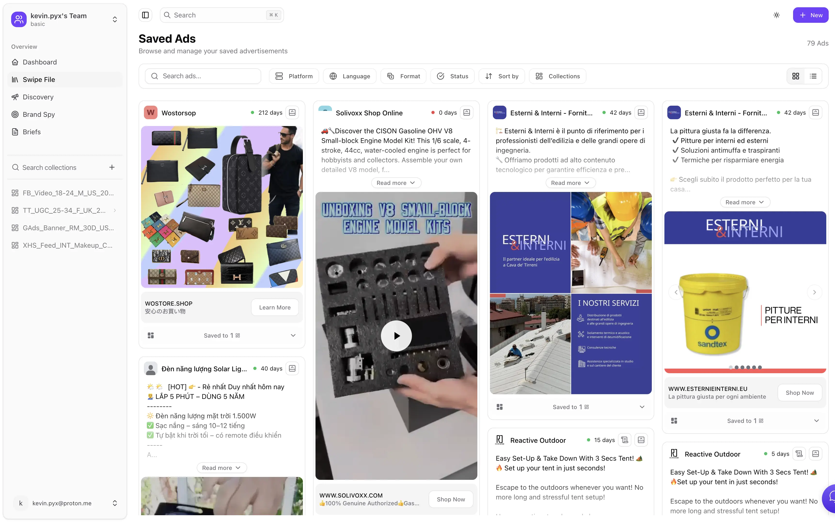 Save creatives from Facebook, TikTok, YouTube Shorts, LinkedIn & more into a searchable inspiration library built for performance marketers and creative teams.